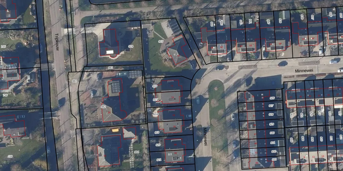 Het perceel waarop Minnewei 72 staat heeft een oppervlakte van 228 m². Dit is een middelgroot perceel. De perceeloppervlakte wordt geregistreerd door het Kadaster. Gedetailleerde informatie over de maten van dit perceel kunt u vinden in het rapport Kadastrale kaart met maatvoering van Minnewei 72.