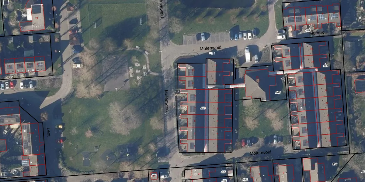 Het perceel waarop Molenwoid 9 staat heeft een oppervlakte van 1500 m². Dit is een zeer groot perceel. De perceeloppervlakte wordt geregistreerd door het Kadaster. Gedetailleerde informatie over de maten van dit perceel kunt u vinden in het rapport Kadastrale kaart met maatvoering van Molenwoid 9.