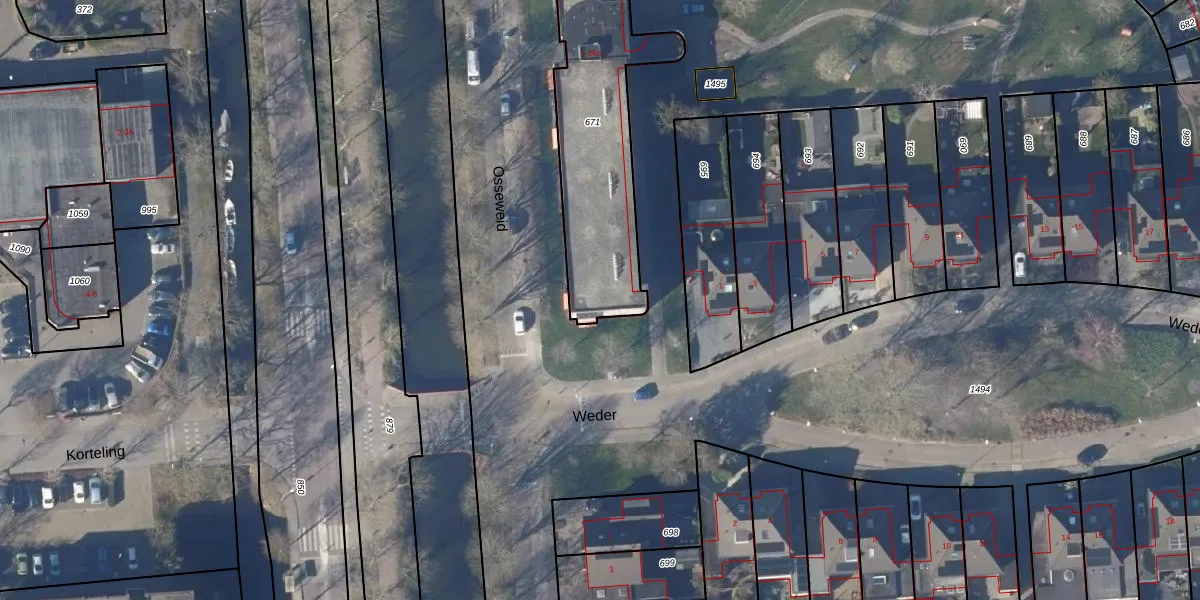 Het perceel waarop Osseweid 26 staat heeft een oppervlakte van 942 m². Dit is een groot perceel. De perceeloppervlakte wordt geregistreerd door het Kadaster. Gedetailleerde informatie over de maten van dit perceel kunt u vinden in het rapport Kadastrale kaart met maatvoering van Osseweid 26.