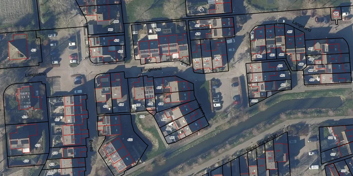 Gebruik de zoekbalk of klik op een perceel voor informatie over de adressen binnen dit perceel.