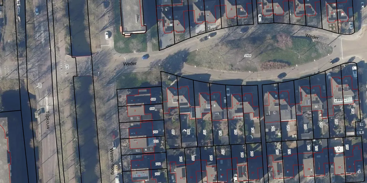 Het perceel waarop Weder 4 staat heeft een oppervlakte van 329 m². Dit is een groot perceel. De perceeloppervlakte wordt geregistreerd door het Kadaster. Gedetailleerde informatie over de maten van dit perceel kunt u vinden in het rapport Kadastrale kaart met maatvoering van Weder 4.