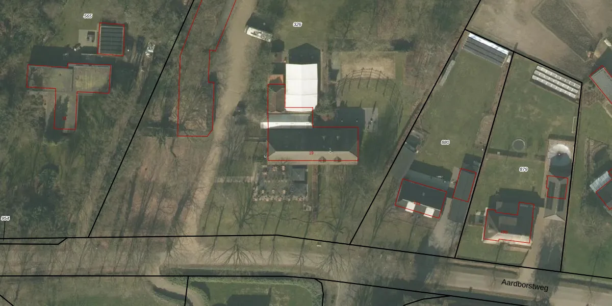 Het perceel waarop Aardborstweg 19 staat heeft een oppervlakte van 1,3 ha. Dit is een zeer groot perceel. De perceeloppervlakte wordt geregistreerd door het Kadaster. Gedetailleerde informatie over de maten van dit perceel kunt u vinden in het rapport Kadastrale kaart met maatvoering van Aardborstweg 19.