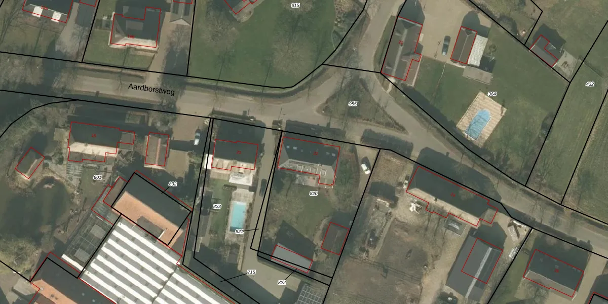 Gebruik de zoekbalk of klik op een perceel voor informatie over de adressen binnen dit perceel.