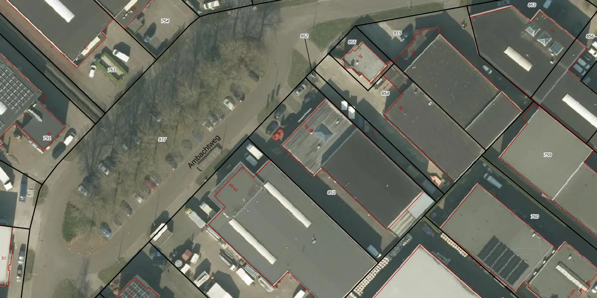 Ambachtweg 38 is gelegen op kadastraal perceel MLO01L851. Deze kadastrale aanduiding is uniek en wordt gebruikt door het Kadaster om eigendomsrechten en andere zakelijke rechten vast te leggen. Het perceel maakt onderdeel uit van de kadastrale gemeente Mierlo.