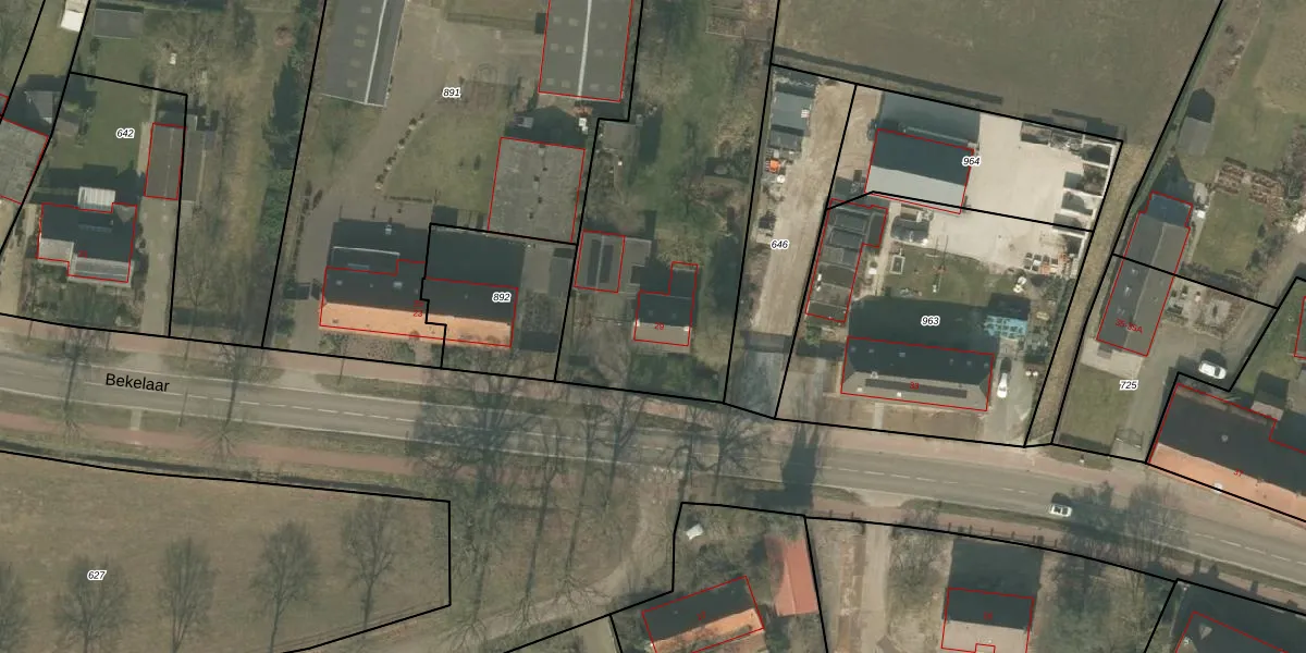 Het perceel waarop Bekelaar 29 staat heeft een oppervlakte van 3885 m². Dit is een zeer groot perceel. De perceeloppervlakte wordt geregistreerd door het Kadaster. Gedetailleerde informatie over de maten van dit perceel kunt u vinden in het rapport Kadastrale kaart met maatvoering van Bekelaar 29.