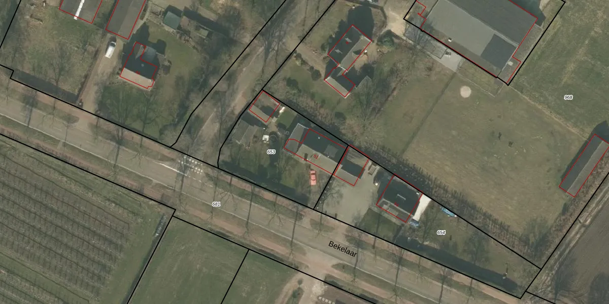 Het perceel waarop Bekelaar 51 staat heeft een oppervlakte van 935 m². Dit is een groot perceel. De perceeloppervlakte wordt geregistreerd door het Kadaster. Gedetailleerde informatie over de maten van dit perceel kunt u vinden in het rapport Kadastrale kaart met maatvoering van Bekelaar 51.