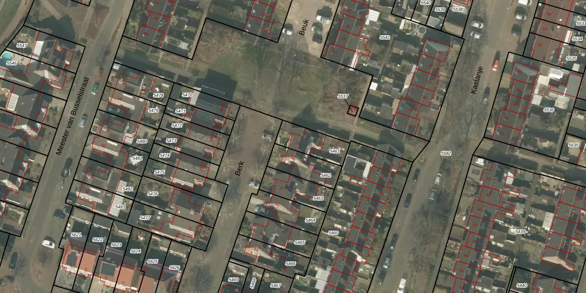 Het perceel waarop Berk 33 staat heeft een oppervlakte van 204 m². Dit is een middelgroot perceel. De perceeloppervlakte wordt geregistreerd door het Kadaster. Gedetailleerde informatie over de maten van dit perceel kunt u vinden in het rapport Kadastrale kaart met maatvoering van Berk 33.