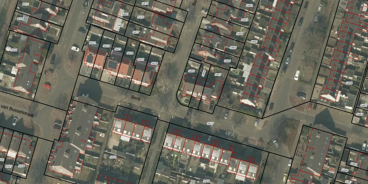 Het perceel waarop Berk 45 staat heeft een oppervlakte van 184 m². Dit is een middelgroot perceel. De perceeloppervlakte wordt geregistreerd door het Kadaster. Gedetailleerde informatie over de maten van dit perceel kunt u vinden in het rapport Kadastrale kaart met maatvoering van Berk 45.