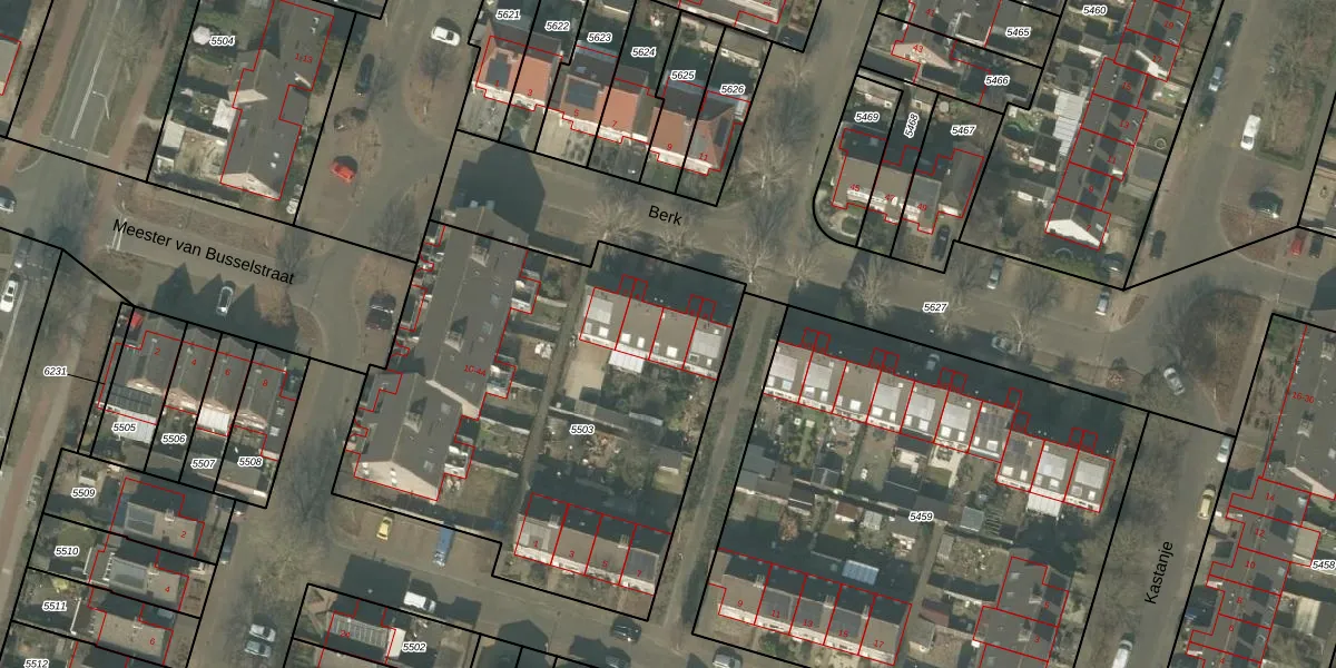 Berk 6 is gelegen op kadastraal perceel MLO01F5503. Deze kadastrale aanduiding is uniek en wordt gebruikt door het Kadaster om eigendomsrechten en andere zakelijke rechten vast te leggen. Het perceel maakt onderdeel uit van de kadastrale gemeente Mierlo.