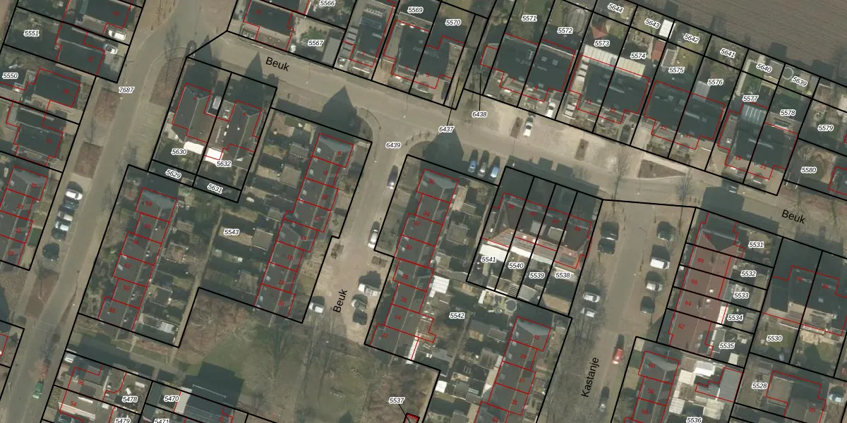 Het perceel waarop Beuk 34 staat heeft een oppervlakte van 1900 m². Dit is een zeer groot perceel. De perceeloppervlakte wordt geregistreerd door het Kadaster. Gedetailleerde informatie over de maten van dit perceel kunt u vinden in het rapport Kadastrale kaart met maatvoering van Beuk 34.