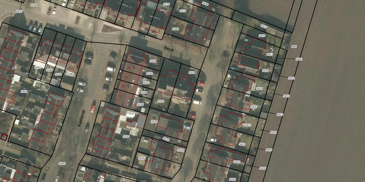 Het perceel waarop Beuk 48 staat heeft een oppervlakte van 306 m². Dit is een groot perceel. De perceeloppervlakte wordt geregistreerd door het Kadaster. Gedetailleerde informatie over de maten van dit perceel kunt u vinden in het rapport Kadastrale kaart met maatvoering van Beuk 48.