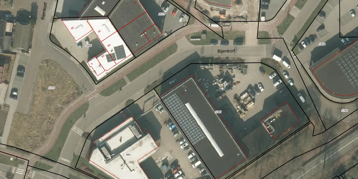 Het perceel waarop Bijenkorf 11 staat heeft een oppervlakte van 3530 m². Dit is een zeer groot perceel. De perceeloppervlakte wordt geregistreerd door het Kadaster. Gedetailleerde informatie over de maten van dit perceel kunt u vinden in het rapport Kadastrale kaart met maatvoering van Bijenkorf 11.