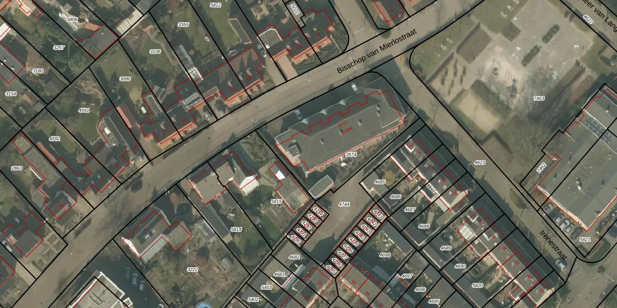 Bisschop van Mierlostraat 24 is gelegen op kadastraal perceel MLO01F3574. Deze kadastrale aanduiding is uniek en wordt gebruikt door het Kadaster om eigendomsrechten en andere zakelijke rechten vast te leggen. Het perceel maakt onderdeel uit van de kadastrale gemeente Mierlo.