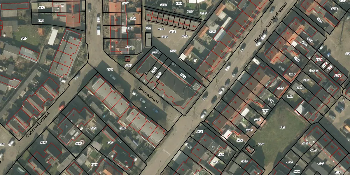 Het perceel waarop Bisschop van Mierlostraat 53-B staat heeft een oppervlakte van 494 m². Dit is een groot perceel. De perceeloppervlakte wordt geregistreerd door het Kadaster. Gedetailleerde informatie over de maten van dit perceel kunt u vinden in het rapport Kadastrale kaart met maatvoering van Bisschop van Mierlostraat 53-B.