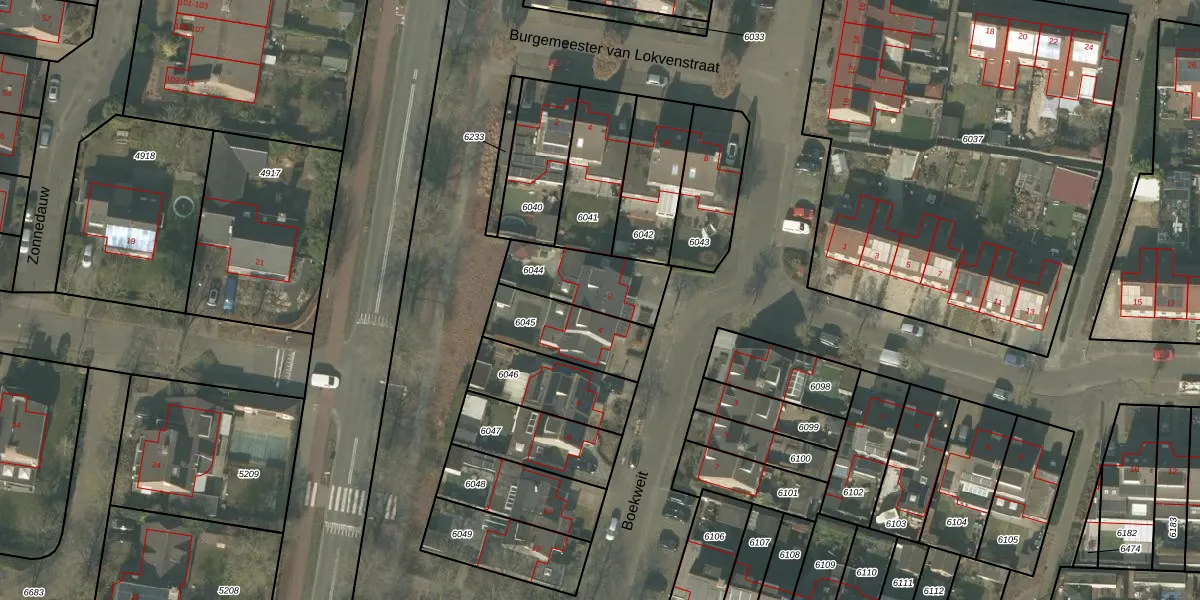 Gebruik de zoekbalk of klik op een perceel voor informatie over de adressen binnen dit perceel.