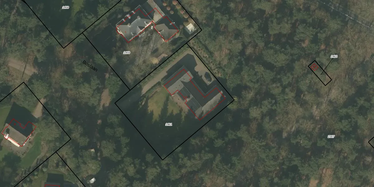 Boslaan 9 is gelegen op kadastraal perceel MLO01E1461. Deze kadastrale aanduiding is uniek en wordt gebruikt door het Kadaster om eigendomsrechten en andere zakelijke rechten vast te leggen. Het perceel maakt onderdeel uit van de kadastrale gemeente Mierlo.