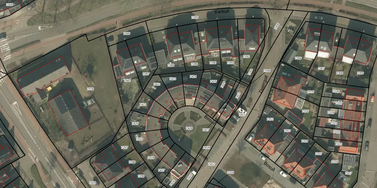 Het perceel waarop Bosuil 15 staat heeft een oppervlakte van 150 m². Dit is een middelgroot perceel. De perceeloppervlakte wordt geregistreerd door het Kadaster. Gedetailleerde informatie over de maten van dit perceel kunt u vinden in het rapport Kadastrale kaart met maatvoering van Bosuil 15.
