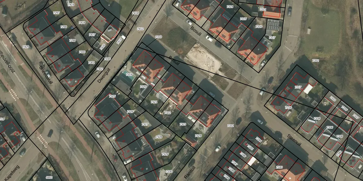 Gebruik de zoekbalk of klik op een perceel voor informatie over de adressen binnen dit perceel.
