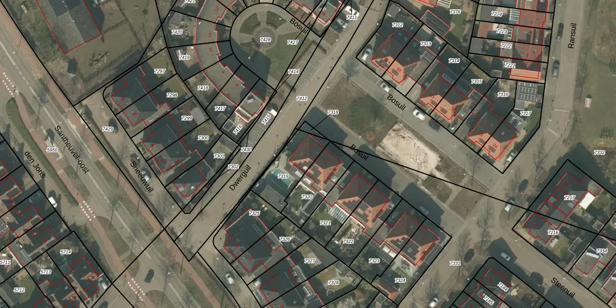 Gebruik de zoekbalk of klik op een perceel voor informatie over de adressen binnen dit perceel.