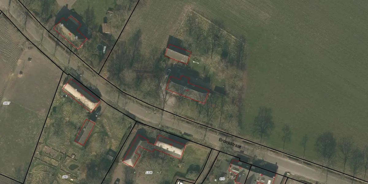 Het perceel waarop Broekstraat 42 staat heeft een oppervlakte van 2,9 ha. Dit is een zeer groot perceel. De perceeloppervlakte wordt geregistreerd door het Kadaster. Gedetailleerde informatie over de maten van dit perceel kunt u vinden in het rapport Kadastrale kaart met maatvoering van Broekstraat 42.