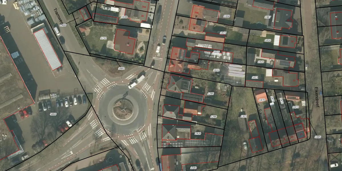 Gebruik de zoekbalk of klik op een perceel voor informatie over de adressen binnen dit perceel.
