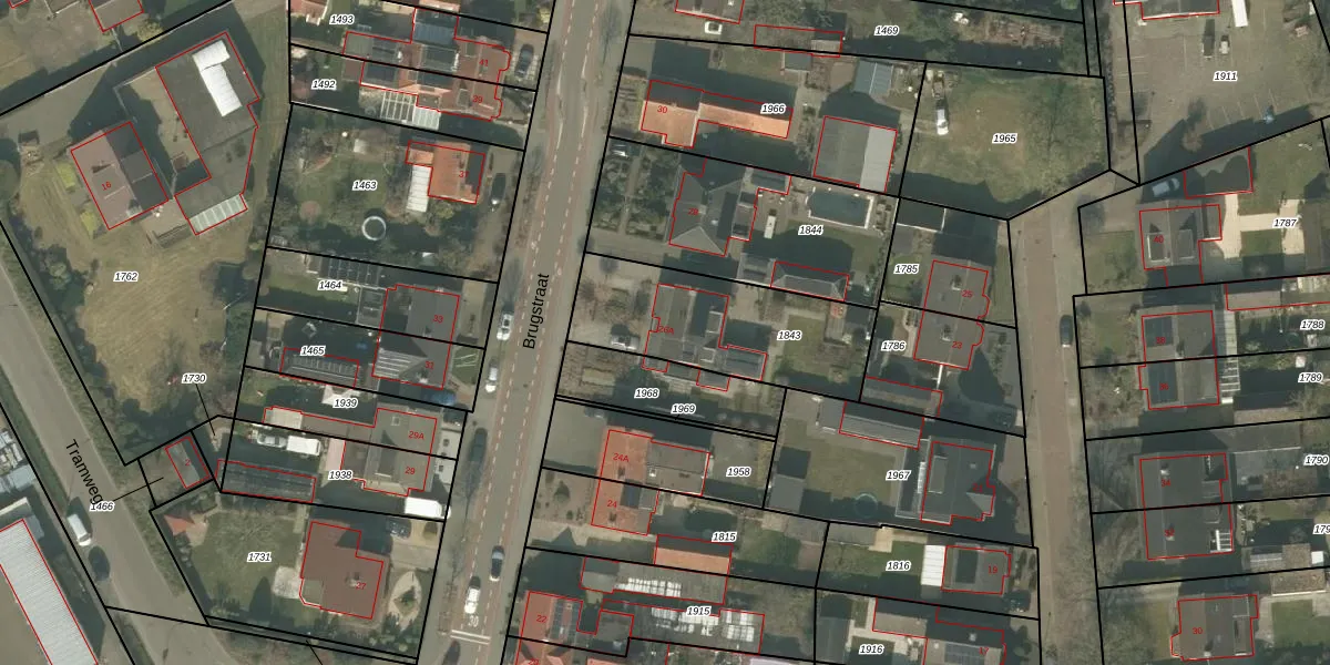 Brugstraat 26-A is gelegen op kadastraal perceel MLO01B1843. Deze kadastrale aanduiding is uniek en wordt gebruikt door het Kadaster om eigendomsrechten en andere zakelijke rechten vast te leggen. Het perceel maakt onderdeel uit van de kadastrale gemeente Mierlo.