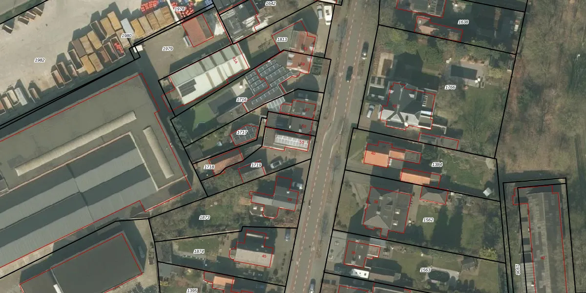 Brugstraat 53 is gelegen op kadastraal perceel MLO01B1719. Deze kadastrale aanduiding is uniek en wordt gebruikt door het Kadaster om eigendomsrechten en andere zakelijke rechten vast te leggen. Het perceel maakt onderdeel uit van de kadastrale gemeente Mierlo.