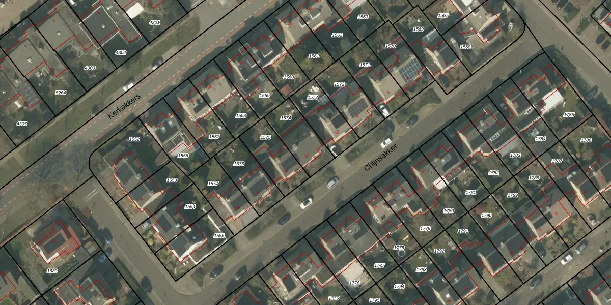 Chijnsakker 12 is gelegen op kadastraal perceel MLO01E1574. Deze kadastrale aanduiding is uniek en wordt gebruikt door het Kadaster om eigendomsrechten en andere zakelijke rechten vast te leggen. Het perceel maakt onderdeel uit van de kadastrale gemeente Mierlo.
