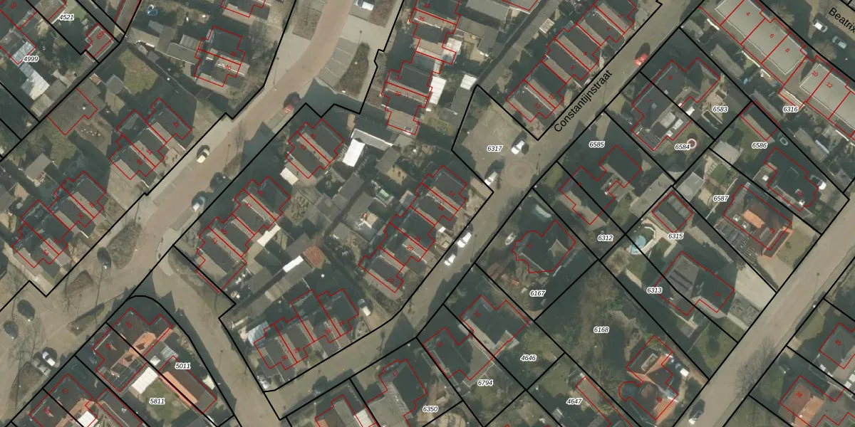 Constantijnstraat 16 is gelegen op kadastraal perceel MLO01F7457. Deze kadastrale aanduiding is uniek en wordt gebruikt door het Kadaster om eigendomsrechten en andere zakelijke rechten vast te leggen. Het perceel maakt onderdeel uit van de kadastrale gemeente Mierlo.