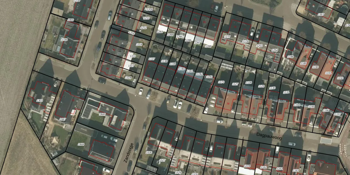 Het perceel waarop Dagpauwoog 26 staat heeft een oppervlakte van 136 m². Dit is een middelgroot perceel. De perceeloppervlakte wordt geregistreerd door het Kadaster. Gedetailleerde informatie over de maten van dit perceel kunt u vinden in het rapport Kadastrale kaart met maatvoering van Dagpauwoog 26.