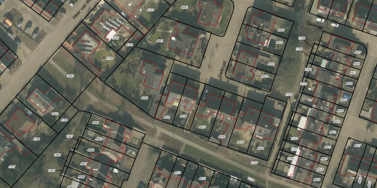 Dalkruid 12 is gelegen op kadastraal perceel MLO01F4838. Deze kadastrale aanduiding is uniek en wordt gebruikt door het Kadaster om eigendomsrechten en andere zakelijke rechten vast te leggen. Het perceel maakt onderdeel uit van de kadastrale gemeente Mierlo.