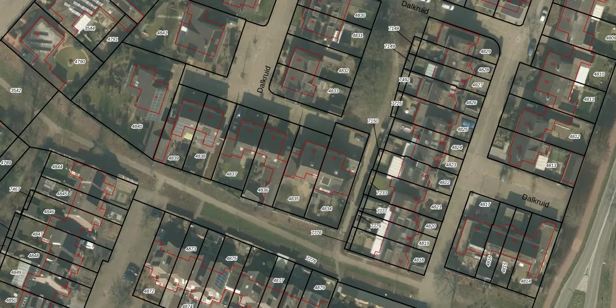 Dalkruid 18 is gelegen op kadastraal perceel MLO01F4835. Deze kadastrale aanduiding is uniek en wordt gebruikt door het Kadaster om eigendomsrechten en andere zakelijke rechten vast te leggen. Het perceel maakt onderdeel uit van de kadastrale gemeente Mierlo.