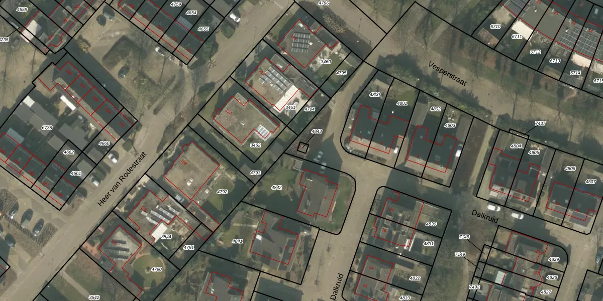 Dalkruid 2 is gelegen op kadastraal perceel MLO01F4843. Deze kadastrale aanduiding is uniek en wordt gebruikt door het Kadaster om eigendomsrechten en andere zakelijke rechten vast te leggen. Het perceel maakt onderdeel uit van de kadastrale gemeente Mierlo.