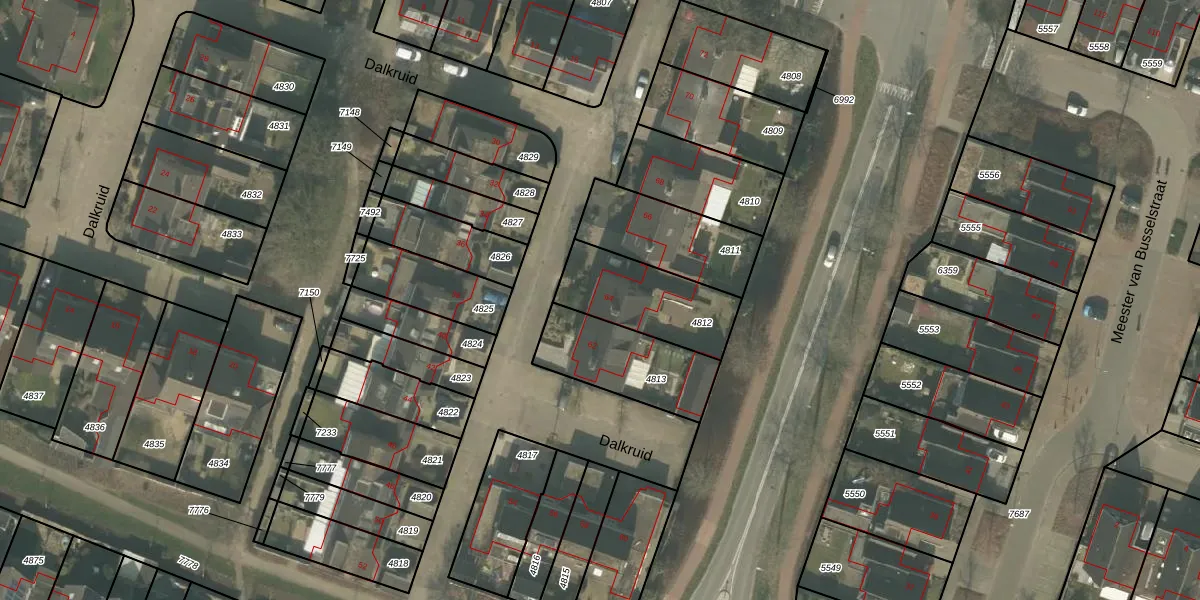 Het perceel waarop Dalkruid 64 staat heeft een oppervlakte van 324 m². Dit is een groot perceel. De perceeloppervlakte wordt geregistreerd door het Kadaster. Gedetailleerde informatie over de maten van dit perceel kunt u vinden in het rapport Kadastrale kaart met maatvoering van Dalkruid 64.