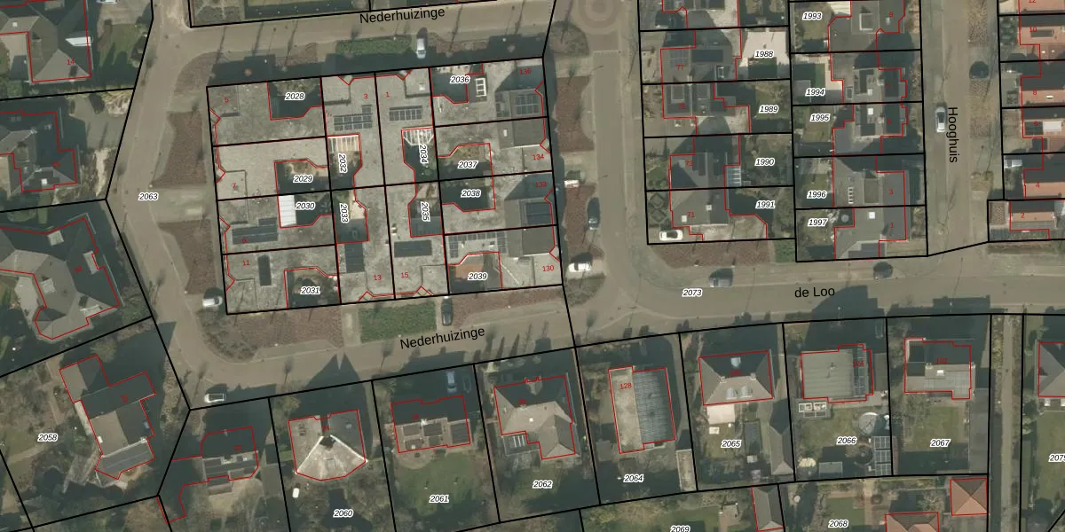 Gebruik de zoekbalk of klik op een perceel voor informatie over de adressen binnen dit perceel.