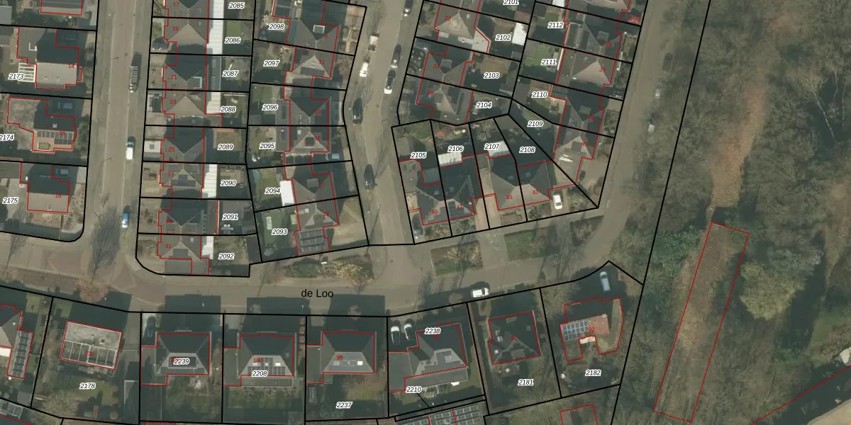 Het perceel waarop de Loo 49 staat heeft een oppervlakte van 256 m². Dit is een middelgroot perceel. De perceeloppervlakte wordt geregistreerd door het Kadaster. Gedetailleerde informatie over de maten van dit perceel kunt u vinden in het rapport Kadastrale kaart met maatvoering van de Loo 49.