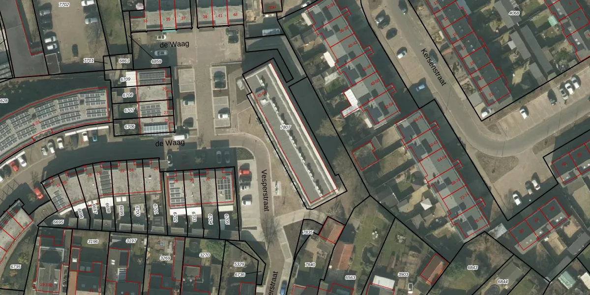 de Waag 65 is gelegen op kadastraal perceel MLO01F7807. Deze kadastrale aanduiding is uniek en wordt gebruikt door het Kadaster om eigendomsrechten en andere zakelijke rechten vast te leggen. Het perceel maakt onderdeel uit van de kadastrale gemeente Mierlo.