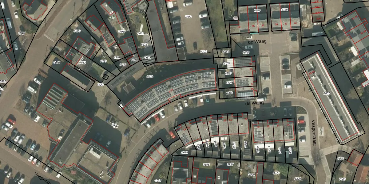 de Waag 7 is gelegen op kadastraal perceel MLO01F6628. Deze kadastrale aanduiding is uniek en wordt gebruikt door het Kadaster om eigendomsrechten en andere zakelijke rechten vast te leggen. Het perceel maakt onderdeel uit van de kadastrale gemeente Mierlo.