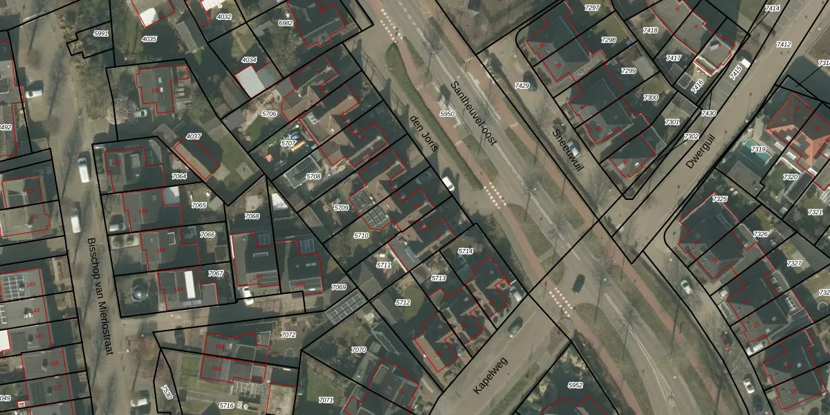 Gebruik de zoekbalk of klik op een perceel voor informatie over de adressen binnen dit perceel.