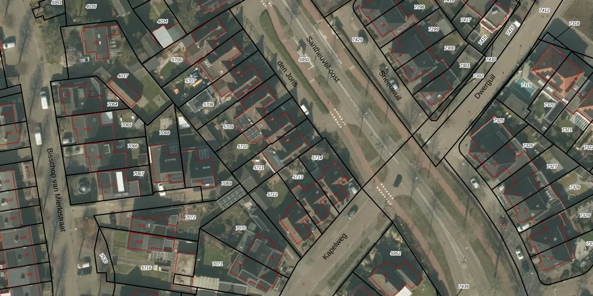 den Joris 12 is gelegen op kadastraal perceel MLO01F5711. Deze kadastrale aanduiding is uniek en wordt gebruikt door het Kadaster om eigendomsrechten en andere zakelijke rechten vast te leggen. Het perceel maakt onderdeel uit van de kadastrale gemeente Mierlo.