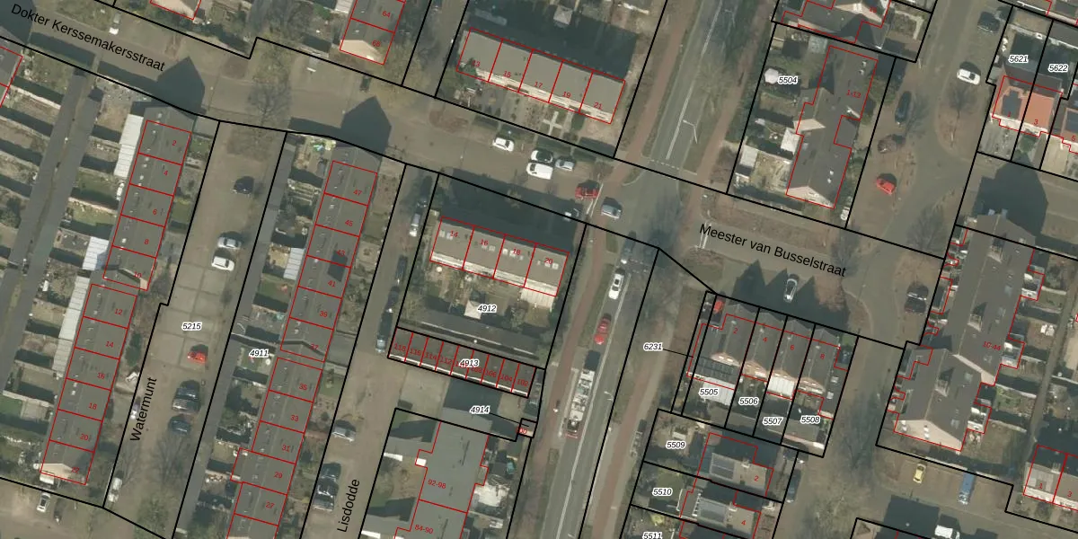 Dokter Kerssemakersstraat 20 is gelegen op kadastraal perceel MLO01F4912. Deze kadastrale aanduiding is uniek en wordt gebruikt door het Kadaster om eigendomsrechten en andere zakelijke rechten vast te leggen. Het perceel maakt onderdeel uit van de kadastrale gemeente Mierlo.