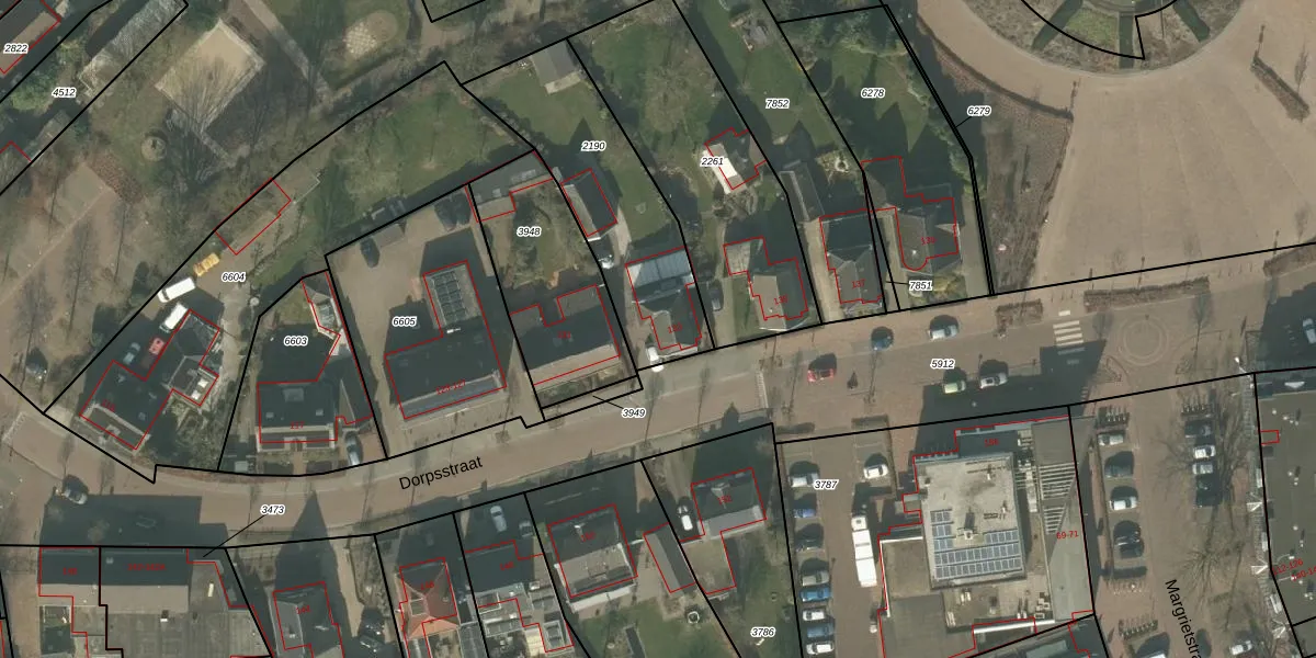 Het perceel waarop Dorpsstraat 133 staat heeft een oppervlakte van 707 m². Dit is een groot perceel. De perceeloppervlakte wordt geregistreerd door het Kadaster. Gedetailleerde informatie over de maten van dit perceel kunt u vinden in het rapport Kadastrale kaart met maatvoering van Dorpsstraat 133.