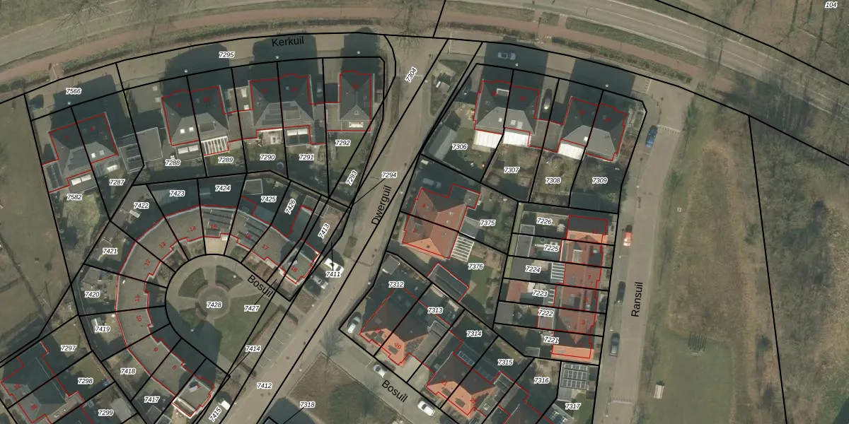 Gebruik de zoekbalk of klik op een perceel voor informatie over de adressen binnen dit perceel.