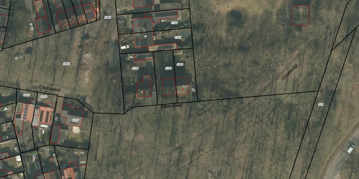 Het perceel waarop Eikendreef 14 staat heeft een oppervlakte van 336 m². Dit is een groot perceel. De perceeloppervlakte wordt geregistreerd door het Kadaster. Gedetailleerde informatie over de maten van dit perceel kunt u vinden in het rapport Kadastrale kaart met maatvoering van Eikendreef 14.