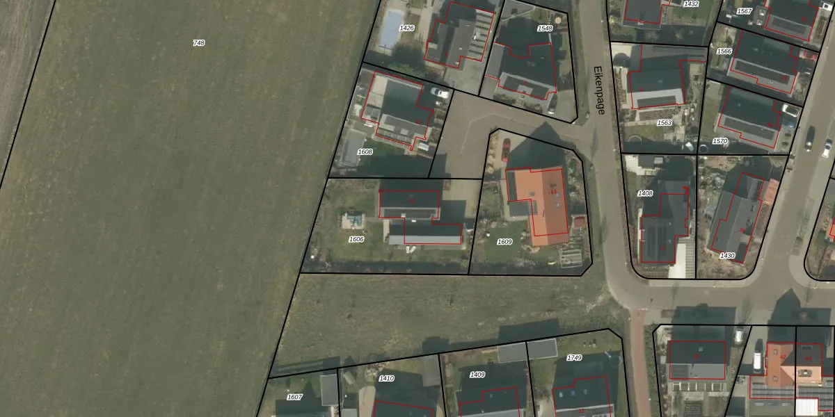 Het perceel waarop Eikenpage 12 staat heeft een oppervlakte van 890 m². Dit is een groot perceel. De perceeloppervlakte wordt geregistreerd door het Kadaster. Gedetailleerde informatie over de maten van dit perceel kunt u vinden in het rapport Kadastrale kaart met maatvoering van Eikenpage 12.