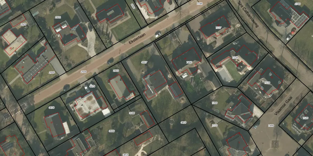 Eksterlaan 1 is gelegen op kadastraal perceel MLO01F3557. Deze kadastrale aanduiding is uniek en wordt gebruikt door het Kadaster om eigendomsrechten en andere zakelijke rechten vast te leggen. Het perceel maakt onderdeel uit van de kadastrale gemeente Mierlo.