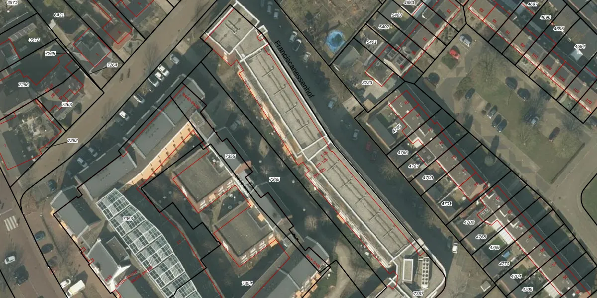 Franciscanessenhof 113 is gelegen op kadastraal perceel MLO01F7357. Deze kadastrale aanduiding is uniek en wordt gebruikt door het Kadaster om eigendomsrechten en andere zakelijke rechten vast te leggen. Het perceel maakt onderdeel uit van de kadastrale gemeente Mierlo.