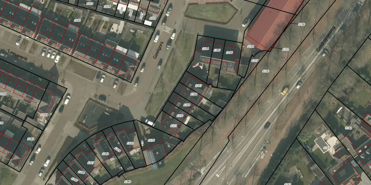 Geelgors 13 is gelegen op kadastraal perceel MLO01L1168. Deze kadastrale aanduiding is uniek en wordt gebruikt door het Kadaster om eigendomsrechten en andere zakelijke rechten vast te leggen. Het perceel maakt onderdeel uit van de kadastrale gemeente Mierlo.