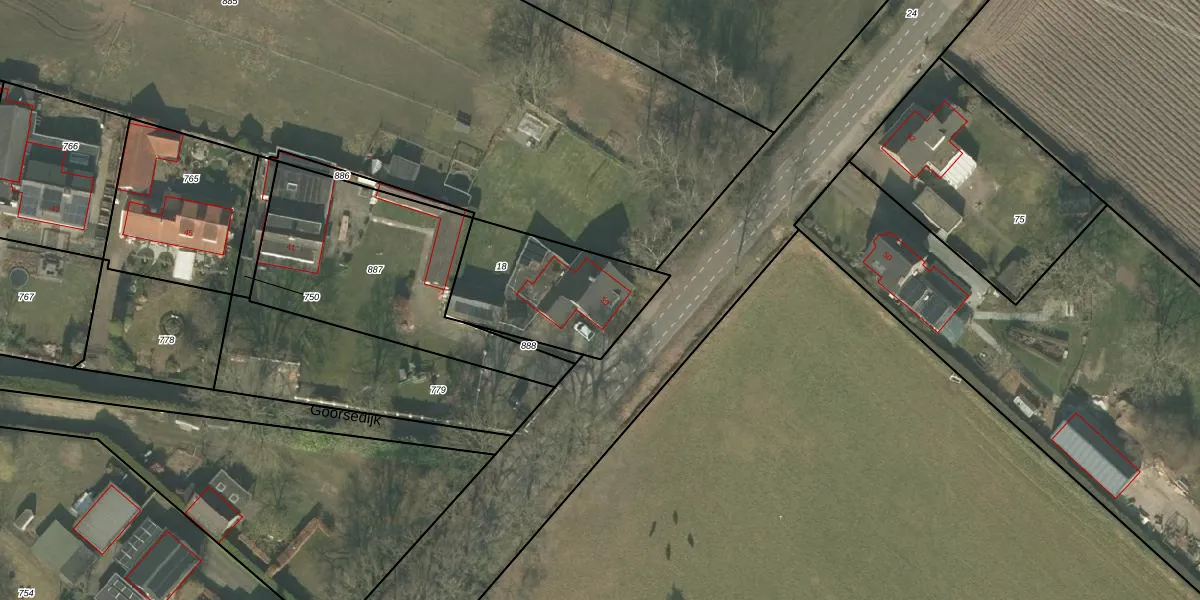 Het perceel waarop Goorsedijk 39 staat heeft een oppervlakte van 510 m². Dit is een groot perceel. De perceeloppervlakte wordt geregistreerd door het Kadaster. Gedetailleerde informatie over de maten van dit perceel kunt u vinden in het rapport Kadastrale kaart met maatvoering van Goorsedijk 39.