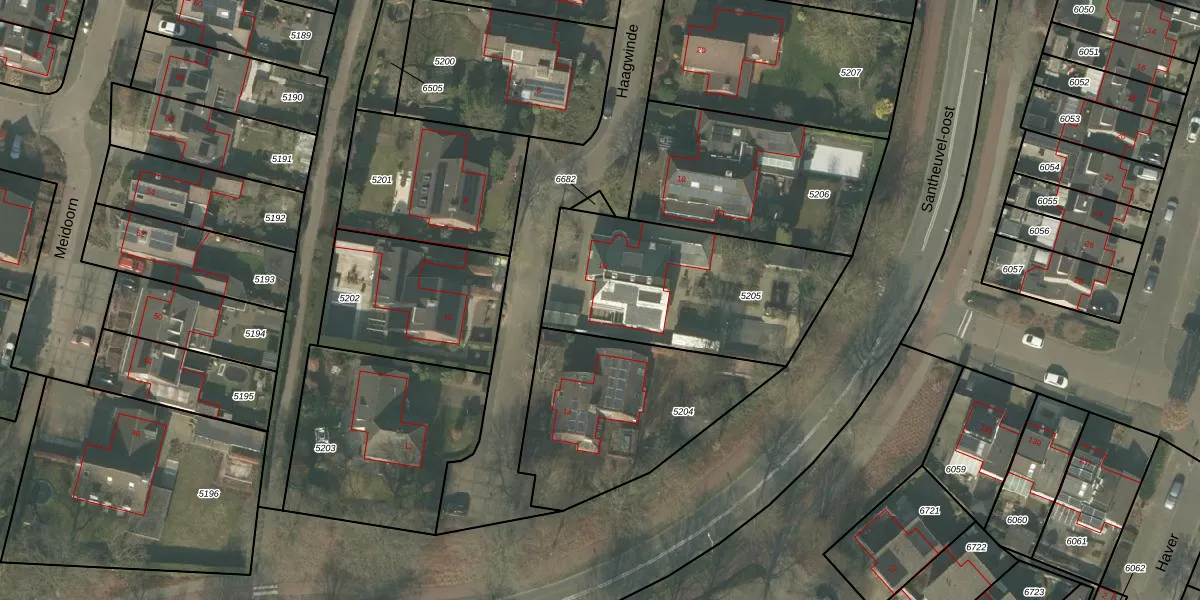 Gebruik de zoekbalk of klik op een perceel voor informatie over de adressen binnen dit perceel.